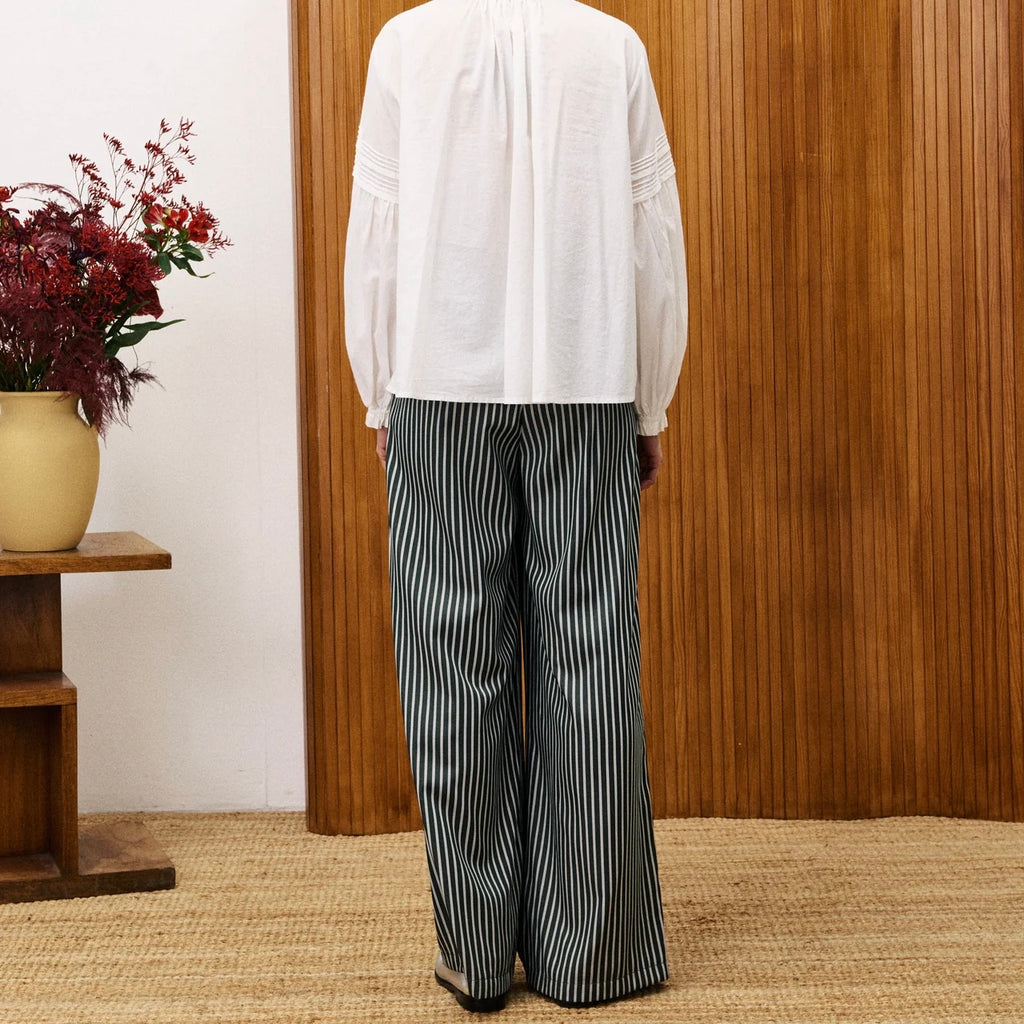 Elevate your look with FRNCH Aster Moss Green Pants. These high waisted and belted pants feature a chic striped design, adding a touch of sophistication to any outfit. Made with a beautiful moss green color, these pants are perfect for any stylish occasion.