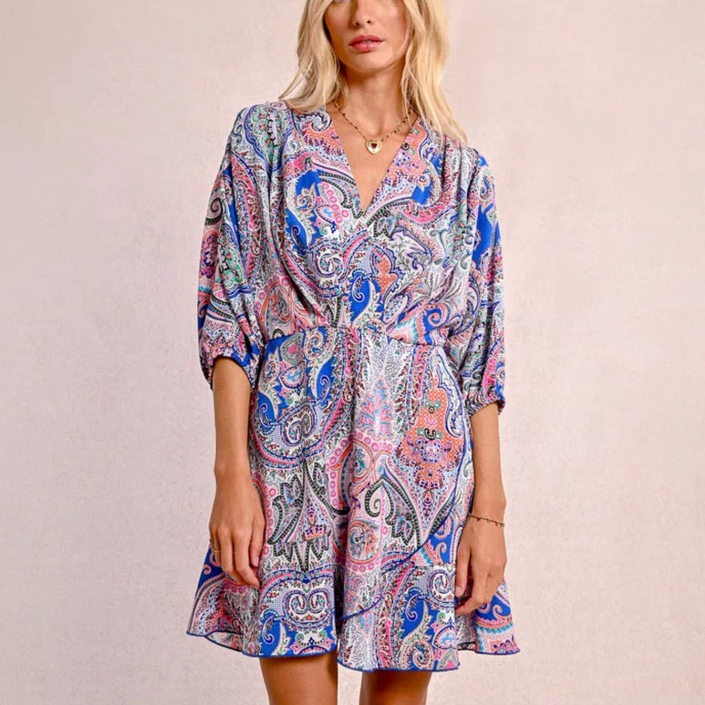 This Molly Bracken printed v neck dress is crafted with precision and features a flattering v neck design. Made with high-quality materials, it offers both comfort and style. Perfect for any occasion, this dress is both elegant and versatile. Upgrade your wardrobe with this must-have piece.