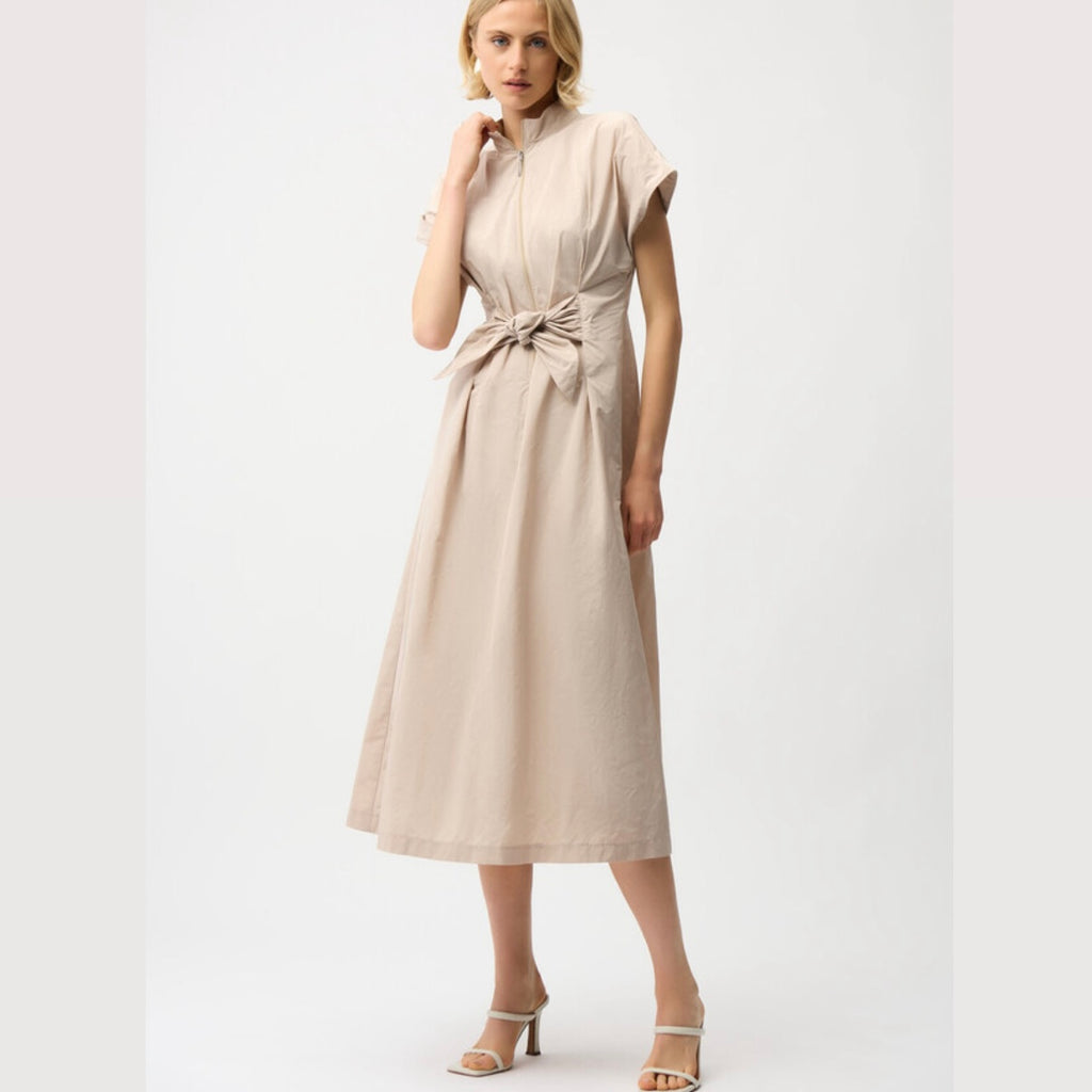The Joseph Ribkoff Midi Wrap Dress combines elegance and versatility with its high-neck, short-sleeve design. Featuring a zipper, knotted, and belted style, this dress is ideal for casual summer events. Its plain pattern and straight sleeves offer a sophisticated look while ensuring all-day comfort.