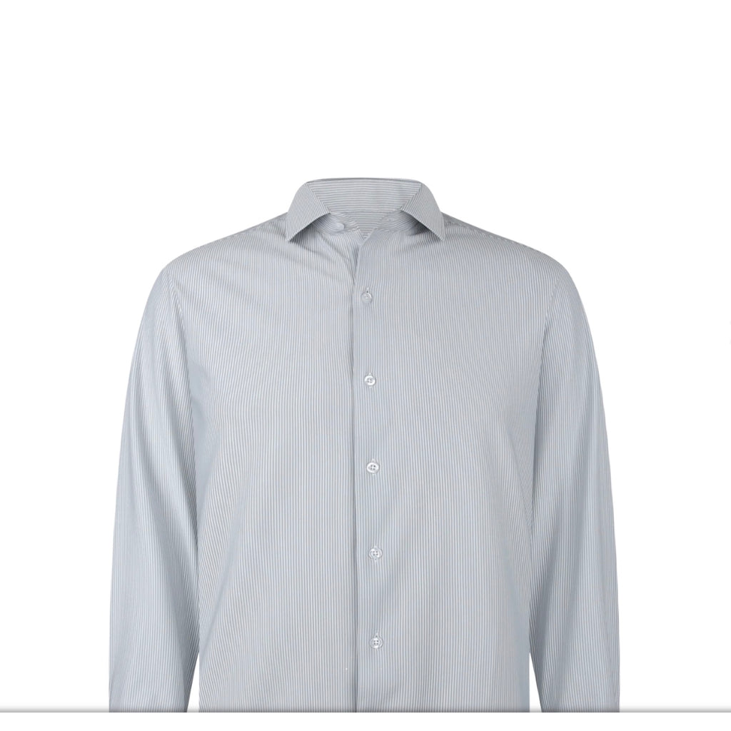 This American Heritage button up shirt features a timeless grey and white striped design. Made with high-quality materials, this shirt offers both style and comfort. Elevate your wardrobe with this classic piece, perfect for any occasion.